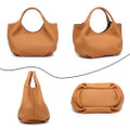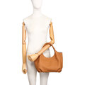 本革 丸い 新品 大人 かわいい ハンドメイド トートバッグ 通勤 日常 キャメル W52