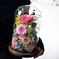 この作品は「Smiling Face(笑顔)」と名付けられています。私たちが一緒に過ごした笑顔を思い出させてくれます。それは花のように輝き、心に残る思い出になります。サイズは約17×17×26.5cm。高級感のあるガラスカバーが付属しているので、どなたにも安心してお贈りいただけます。ボックスは花を埃や湿気から守り、より長く楽しめます。この作品は4種類のデザインからお選びいただけます。あらゆるシーンや相手にぴったりの贈り物です。