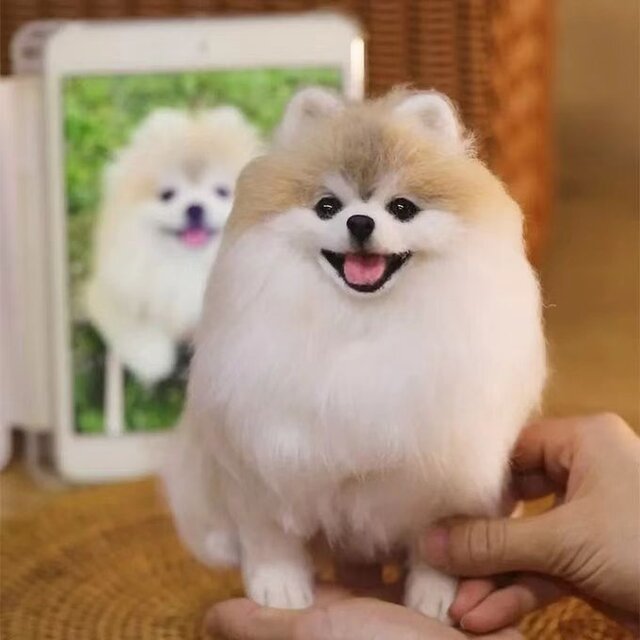 【オーダーメイド ペット】 愛犬 羊毛フェルト 博美犬 亡くなったペット ぬいぐるみ 犬 うちの子、ペット似顔絵、犬 猫 人形