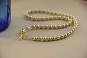 シェルパール(貝パール)は、天然の貝の粉末から作られる人工的なパールで、天然パールに近い見た目と質感を兼ね備えています。美しさは勿論のこと、色や形が均一で耐久性にも優れています。