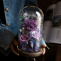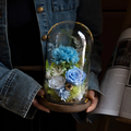 約13.5 x 13.5 x 22cmのこの作品は、高級感のあるガラスカバーが付属しており、どなたにも安心してお贈りいただけます。また、ボックスは花をほこりや湿気から守り、より長くお花をお楽しみいただけます。