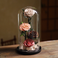 作品のサイズは約15 x 15 x 30 cmで、高級感のあるガラスカバーが付属しており、どなたにも安心してお贈りいただけます。また、ボックスは花を埃や湿気から守り、より長く保存することができます。