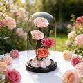 作品のサイズは約15×15×30cm。高級感のあるガラスカバーが付属しているので、どなたにも安心してお贈りいただけます。ボックスは花を埃や湿気から守り、より長く楽しめます。この作品には、さまざまな機会や相手に合わせた3つのデザインがあります。