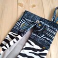 デニムポケット柄&ダルメシアン柄&ゼブラ柄をパッチワークしたものです。
