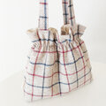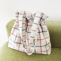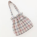 トラッドな雰囲気のチェック柄が印象的な巾着風ショルダーバッグです。
