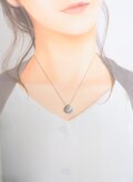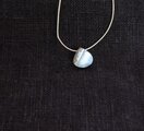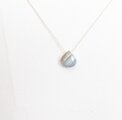 こちらは非常に個性の強い石ですが、淡いブルーとグレーの色味が上品さを出しています。大振りの石ですので、バランスをとるため糸を長めにしても素敵です。