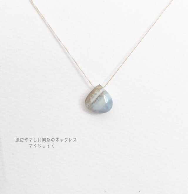 190-④【ストライプブルーオパール】10月の誕生石 14kgf 肌にやさしい絹糸のネックレス 糸の色&長さえらべます