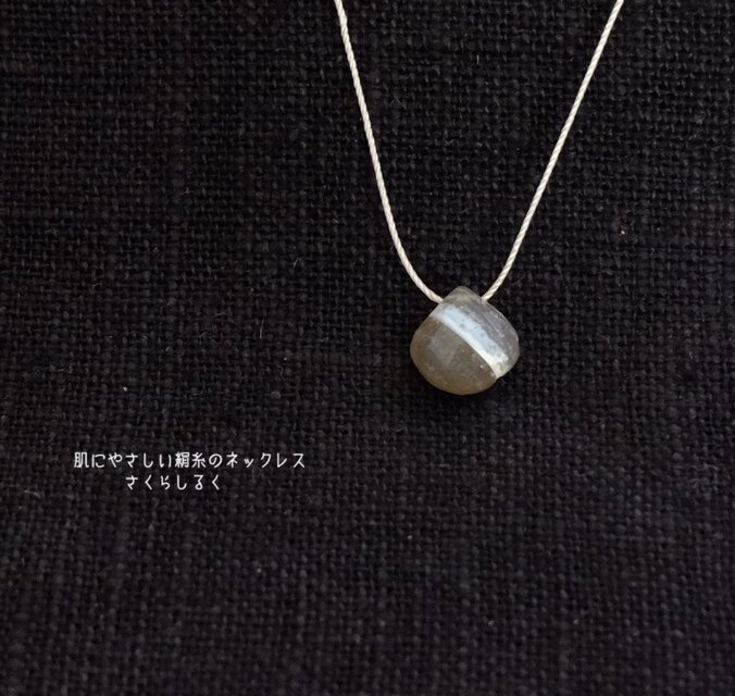 今日届きました。 シルクのネックレスは以前一つ買ったことがあります。 愛用品です。買って以降金属のチェーンが苦手になりました。 年と共に軽いアクセサリーがうれしいです。 大事に使わせていただきます。 ありがとうございました。