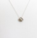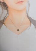 こちらは非常に個性の強い石ですが、淡いブルーとグレーの色味が上品さを出しています。大振りの石ですので、バランスをとるため糸を長めにしても素敵です。