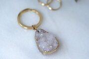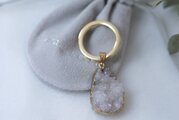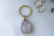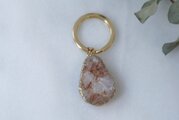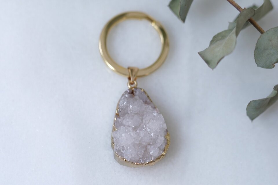 石の表面に結晶が晶出したクォーツを使用し、自然の力強さや美しさを存分にお楽しみいただけるキーホルダーに仕上げました。