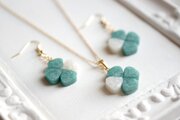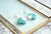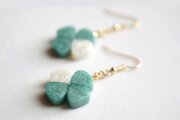 爽やかな光沢のあるモスグリーンと真珠色の組み合わせが可憐なピアス。