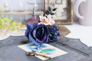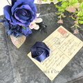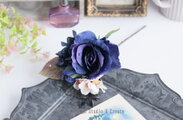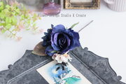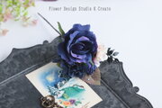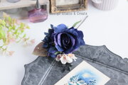 ネイビーの薔薇のフローレスとリボンローズのシージョ留め 髪飾り フラメンコ 青 紺 ネイビー シージョ留め 青い薔薇 ブローチ