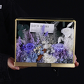作品のサイズは約24 x 19 x 8 cmで、高級感のある透明なギフトボックスに梱包されているので、どなたにも安心してお贈りいただけます。また、ボックスは花を埃や湿気から守り、より長く保存することができます。
