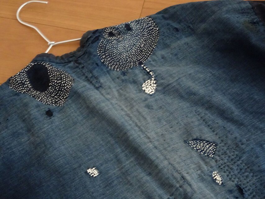 本当のアンティークシャツ。すべて手縫いで縫われていて穴の開いたところも丁寧に繕われてありました。