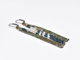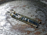 フランスアンティークカットメタルビーズとインディゴブルーアンティークビーズ、ハーキマーダイヤモンドの4連ピアス