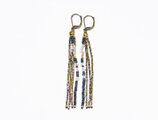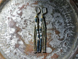 フランスアンティークカットメタルビーズとインディゴブルーアンティークビーズ、ハーキマーダイヤモンドを繋いだ4連ピアスです。