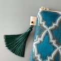 【受注制作】モロッカン生地のタッセル付きポーチ♦ライラ エメラルド♦ギフトにおすすめ♦