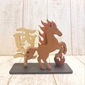 【丙午・特別バージョン】跳ね馬と「午」文字の木製干支飾り|2026年 干支の置物 お正月飾り 還暦祝い【受注制作】