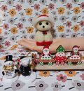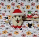 サンタ帽子をかぶった羊毛フェルトのマルチーズ