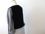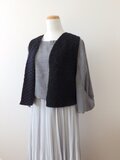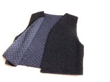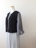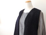 表側を黒のウールループ糸、内側を濃紺のウール糸で二重に編むことによってアストラカンのような風合いのベストに仕上がりました。