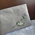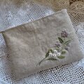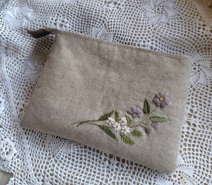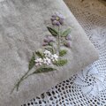 ナチュラルリネンに花や葉などのボタニカルを丁寧に手刺繍をしています。