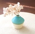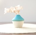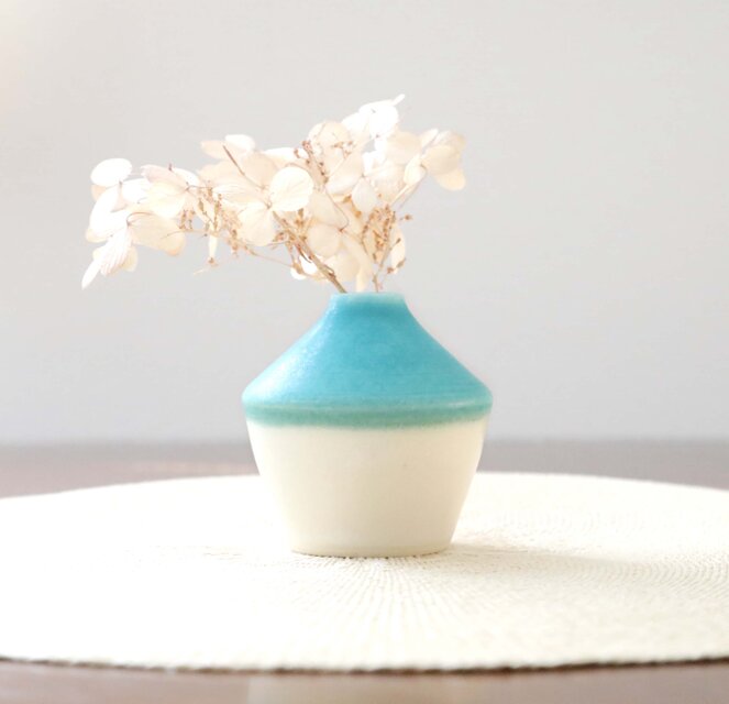 二色の釉薬の爽やかなコントラストと、小ぶりな可愛らしいフォルムをお楽しみいただける花器に仕上がりました。