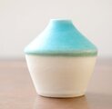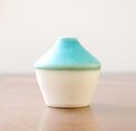 トルコ青マットと白い釉薬のかけ分け一輪挿し * 3