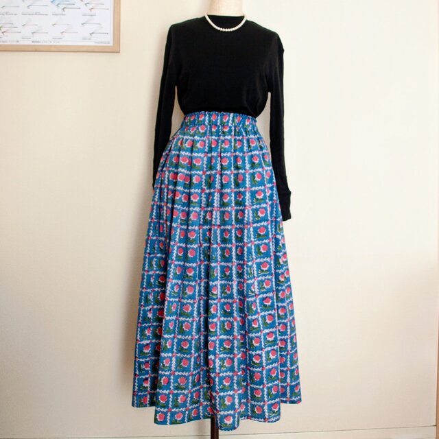 ブロックプリントの可愛さを全面に味わえる総柄スカートです。