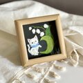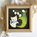 スズランと白猫がモチーフのほっこり和紙アートパネル
