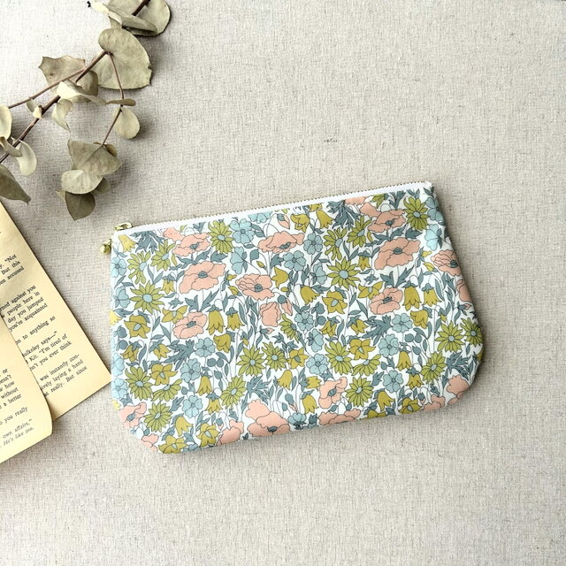 リバティプリントの「Poppy&Daisy」柄のラミネート生地を使ったポーチです。
