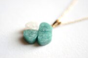 爽やかな光沢のあるモスグリーンと真珠色の組み合わせが可憐なペンダント。