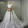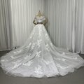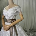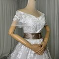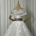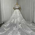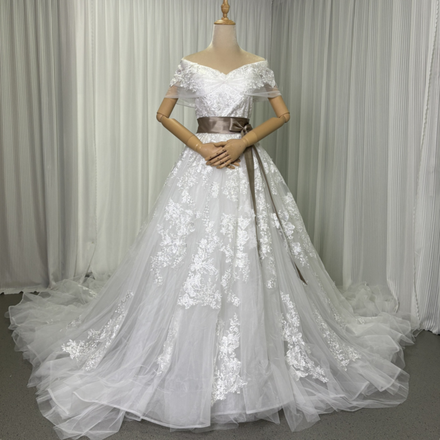 豪華!ウエディングドレス オフショルダー 流れる透け花レース 華やかなトレーン 編み上げ 大人っぽい 拳式/前撮り