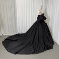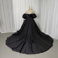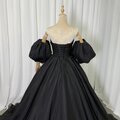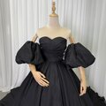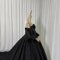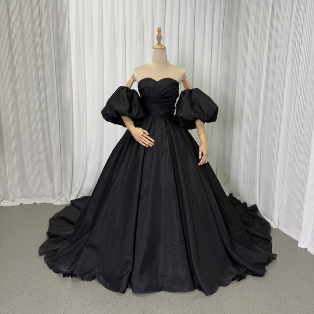パーティードレス ブラック 楊柳オーガンジー ベアトップ パフスリーブ ロングトレーン 編み上げ 発表会