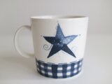 フォルムは定番のTEEMAをベースに、ブルーに輝く星とチェック柄が描かれており、とても可愛らしい作品です。