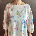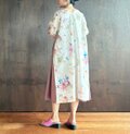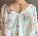 ●身ごろ: 様々な花がランダムに咲き乱れる、自然の庭のような柄の、綿麻コンパス生地。ガーゼのような柔らかな風合い、透け感があります。