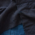 この一着もその流れを汲むもので、表面の藍縞がもつ素朴なリズムと、裏地の無地藍が生み出す静かな対比が印象的。
