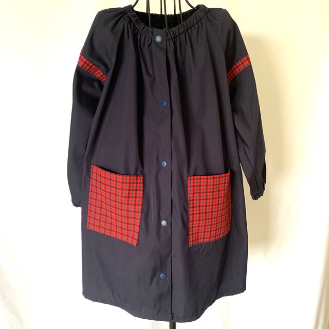 前開きスモック120〜155 紺×赤チェック