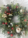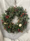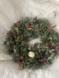 フレッシュグリーンやドライの実物を使った小ぶりのリースです