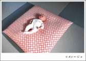『リビングザブトン』の上で気持ちよさそうにぐっすり眠ったら、そのまま赤ちゃんごとくるんで、起こすことなくベッドまで移動できます。抱っこしたまま寝てしまった時、リビングで寝かせたり、キッチンでの作業中に目の届く場所にちょっと寝かせておけるのもお母さんにとっては嬉しいアイテムです。
