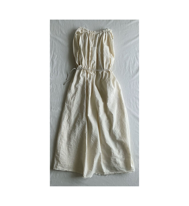竹と綿の混合素材でつくったギャザーワンピースです。