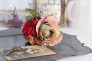 ピンクゴールドの薔薇と赤い薔薇の髪飾り(B) ライトストーン フラメンコ フローレス バラ ゴールド アジサイ バラ 髪飾り