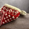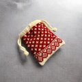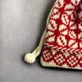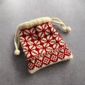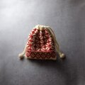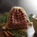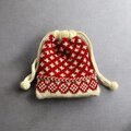 メリノウール100%の毛糸を使い北欧柄を編み込んだ巾着です。