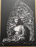 この切り絵の作品は、阿弥陀如来を描いたもので、静かで神聖な雰囲気を醸し出しています。阿弥陀様の姿は、心を癒し、安らぎをもたらす存在。お部屋に飾ることで、日常のストレスを和らげ、穏やかな気持ちになれることでしょう。 この繊細で力強いデザインは、リビングや書斎、瞑想スペースなど、さまざまな場所にぴったり。自然光に当たることで、影が美しく浮かび上がり、まるで阿弥陀様がそこにいるかのような錯覚をもたらします。さらに、この作品はインテリアとしての価値だけでなく、スピリチュアルな意味合いも持ち合わせているので、ちょっとした心の拠り所することができます。 おしゃれだけども深い意味を持つアイテムとして、ぜひあなたのコレクションに加えてみてください。この切り絵があるだけで、空間が一気に洗練され、訪れる人々の目を引くこと間違いなしです!