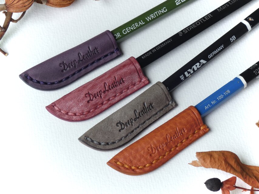 ※鉛筆キャップに使っている革は、種類もバラバラで質感や厚みも違います。ご了承ください。
