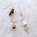 ハロウィンイメージのパーツをアシンメトリーにまとめたピアスです。