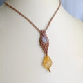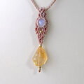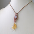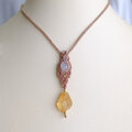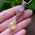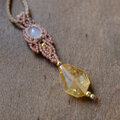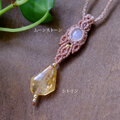 天然シトリン(11月誕生石)・ムーンストーン(スリランカ産)マクラメ編みペンダント 誕生日プレゼント クリスマスギフト 3795