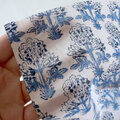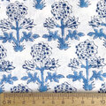 インド ブロックプリント生地 [50cm単位切売] サンガネリ ホワイトフラワー 青い葉っぱ 花 SA IF0361