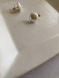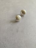 ドームでもなく、まぁるくフラットなパール素材のため耳元にフィットするテイストが大げさにならず身に着けて頂けるボリュームピアスです。