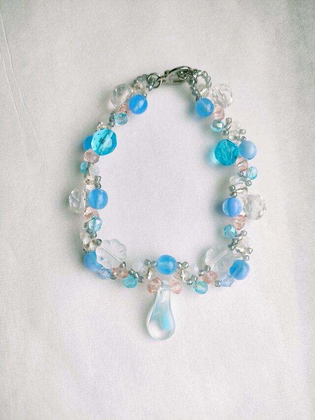 光が透き通り輝く、お菓子のようなガラスのブレスレットです。