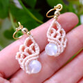 天使の羽をモチーフに良質なタンザニア産ムーンストンをあしらったマクラメ編みピアスです。